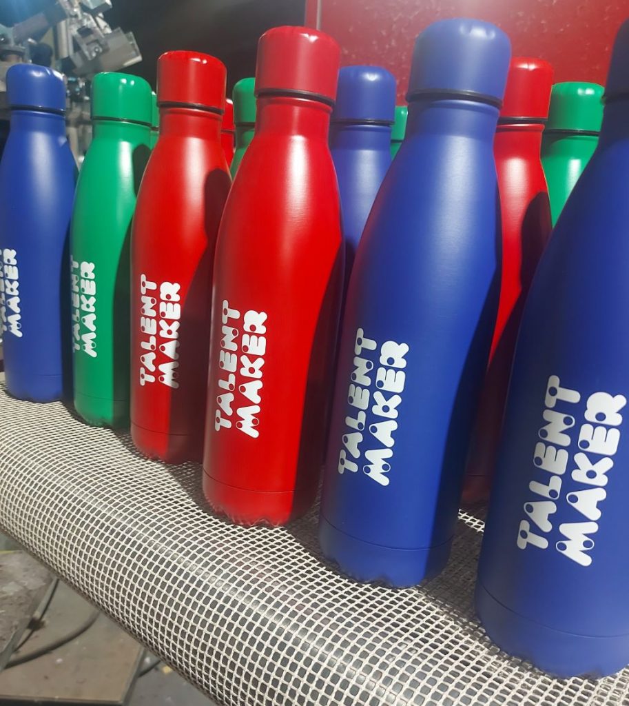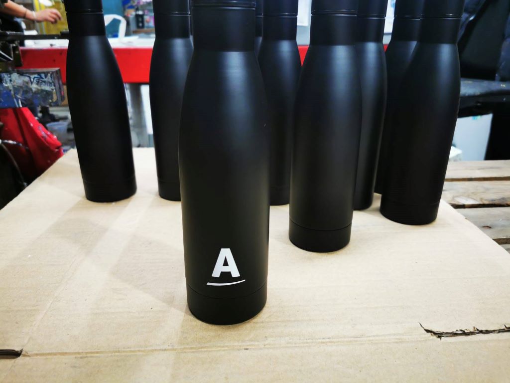 Cuando el termo lo permite, aplicamos serigrafía circular, un sistema que exige: